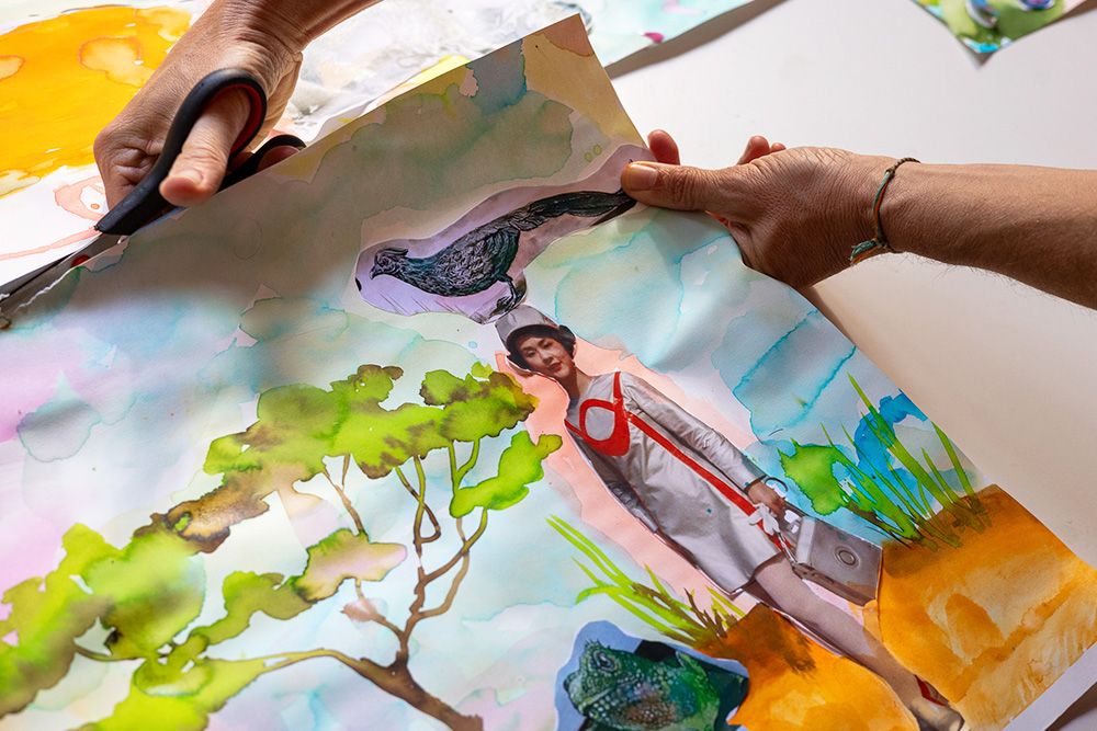 Una especie de cadáver exquisito o quebrantahuesos de papel en el que cada participante agregará los elementos que decida sumándose a un paisaje grupal, intuitivo, espontáneo y lúdico y en lo posible automático.