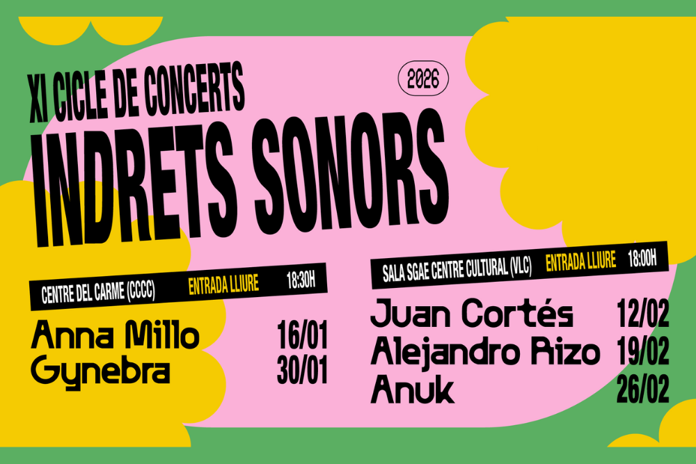 La Fundación SGAE, a través de su Consejo Territorial de la Comunidad Valenciana, presenta la XI edición del ciclo de conciertos Lugares Sonoros, que se celebrará del 16 de enero al 26 de febrero de 2026 con el objetivo de impulsar y difundir el trabajo de las y los compositores e intérpretes de la música de nuestra tierra.