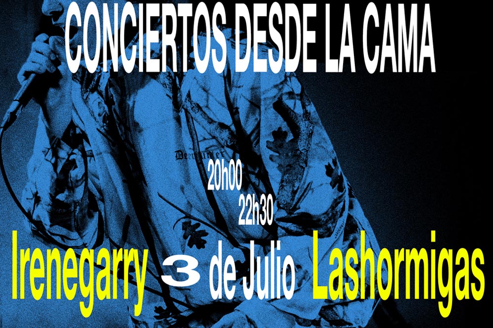 Encapçala la programació Irenegarry, que escriu cançons des de fa un any, en el saló de la seua casa a Madrid, s’ajunta amb xiques que s’assemblen al que a ella li agradaria ser. Crea cançons com una manera bonica de sintetitzar les coses quotidianes, i gaudeix molt amb això. Irenegarry sona a The Marias, Men I Trust, Crumb, Big Pig, Nuria Graham o fins i tot Nelly Furtado. La seua primera cançó publicada “Puto Normando”, una cover de “Norman Fucking Rockwell” té ja quasi 1 milió d’escoltes i la seua més recent publicació “La dels Amics” va pel mateix camí. Per part seua, actuarà Lashormigas, que porta pujant cançons de cantautor a recòndits llocs d’internet des de 2015. Cançons de veu sobre guitarra a l’oli entorn de temes com la sang, l’autobús, la universitat. Paraules que no t’esperes, històries i fantàstics romanços. Migdiades de primavera. Viu a Madrid des de fa uns anys.