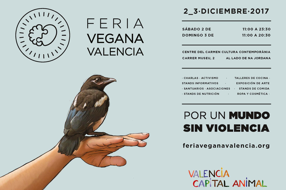 En el marc d’activitats paral·leles a l’exposició València Capital Animal, es va a celebrar en el Centre del Carme una nova edició de la Fira Vegana de València. En ella podràs conéixer tot tipus d’organitzacions de protecció animal, podràs adquirir productes d’alimentació, vestuari o cosmètica sense res d’origen animal, ni tractats o utilitzats o testats en animals. Hi haurà també xarrades, debats, tallers de cuina i projecció de documentals entorn del Veganismo