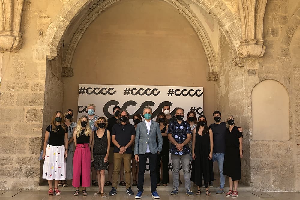València (22.07.21). El director del Centre del Carme Cultura Contemporània (CCCC) i del Consorci de Museus, José Luis Pérez Pont, acompanyat per Jacobo Pallarés i Maribel Bayona, coordinadors de ‘Graners de creació’, i per Laura Pastor i Elisa Matallín, de l’equip de mediació de ‘Graners de creació’, ha presentat aquest matí els 12 projectes seleccionats per a les residències de ‘Graners de creació’ de 2022.