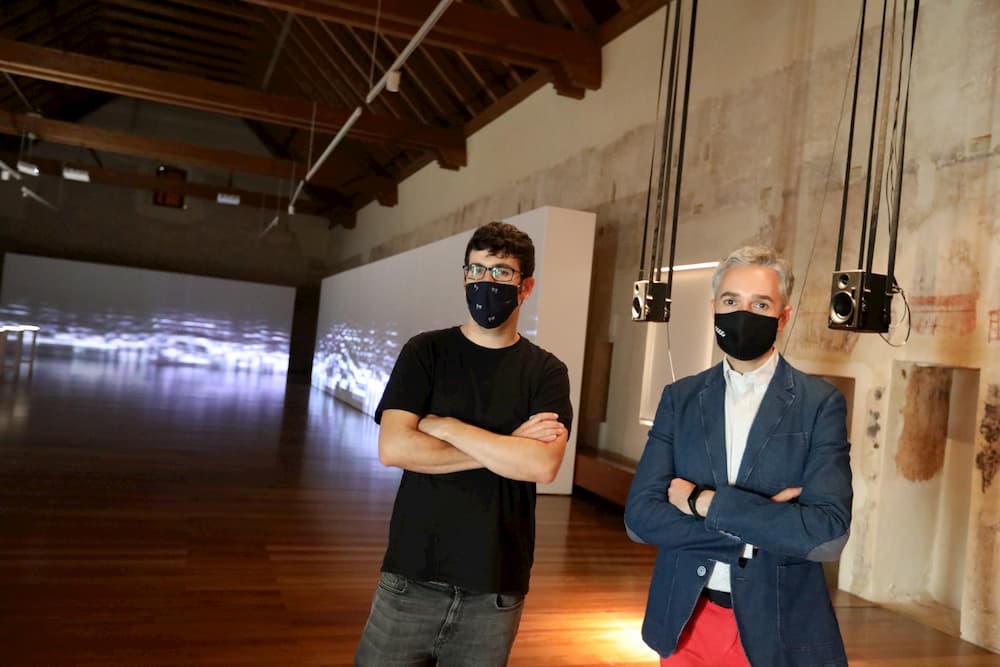 El director del Centre del Carme, José Luis Pérez Pont, acompañado por el artista Edu Comelles, ha presentado esta mañana la muestra que se podrá ver del 11 de septiembre al 15 de noviembre, en la Sala Dormitorio.