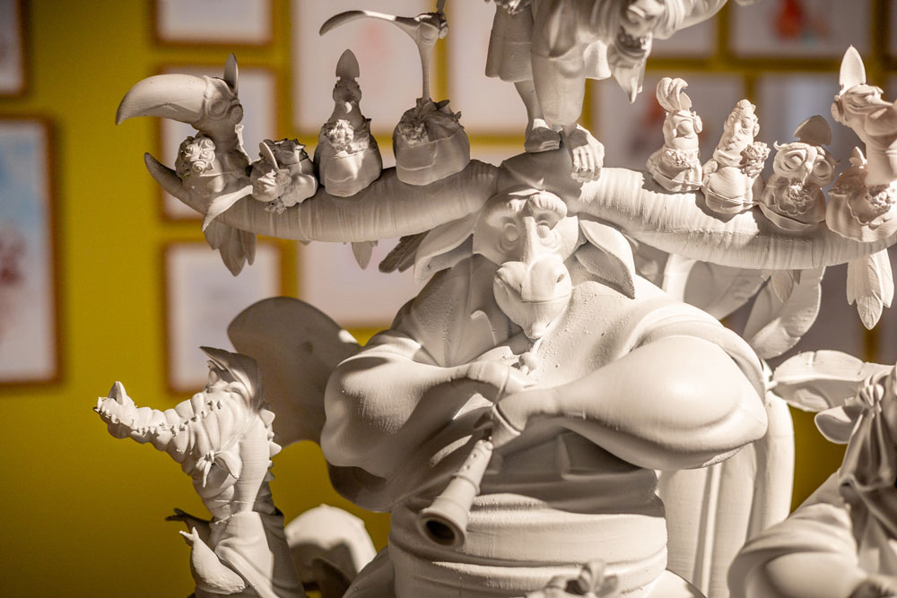 En la seua faceta d’escultor, l’exposició mostra el procés de creació de les figures de porcellana, des de l’esbós en plastilina o en fang, passant per l’escultura d’escaiola fins a la reproducció en porcellana, que és completament artesanal.