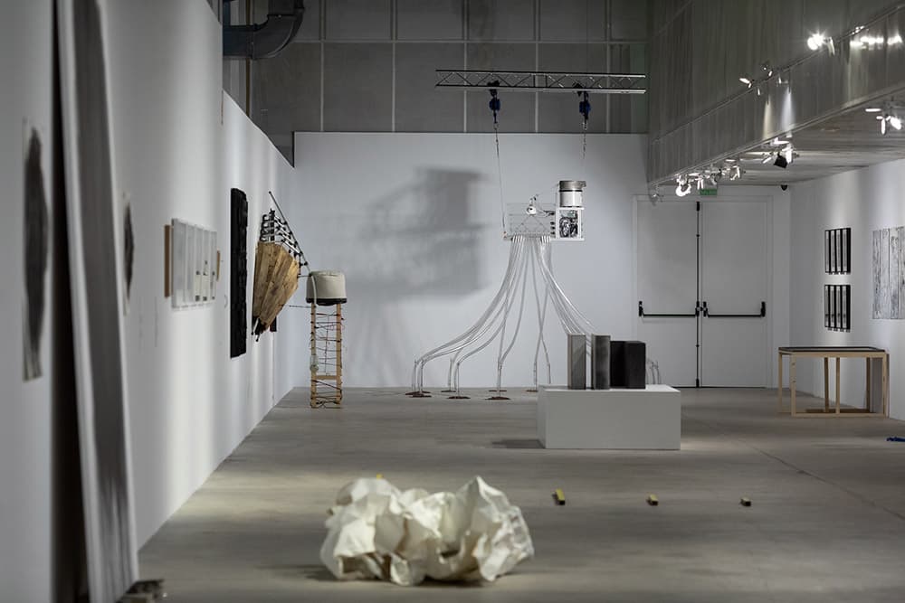 Por otro lado, en ‘El fin y la persistencia’ de Marla Jacarilla (Alcoy, 1980), la muerte de los protagonistas de varias novelas (‘Madame Bovary’, ‘Un mundo feliz’, ‘Lolita’, ‘Crónica de una muerte anunciada’, ‘Las vírgenes suicidas’, ‘Ana Karenina’, ‘Muerte en Venecia’, ‘El extranjero’) se contrapone a la persistencia de la literatura. La estructura ‘S’ de Massimo Pisani (Mantova, 1958, residente en Alicante) es el resultado del equilibrio entre tensiones producidas por los materiales. Toda la estructura está atravesada por un elemento en tensión que acaba en una botella química con azufre.