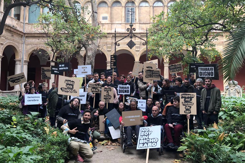 En València, al grito de ‘No soy un bicho raro’, ‘más solidaridad, menos violencia’, ‘accesibilidad real’ o ‘todos somos diferentes’ varios grupos de los centros ocupacionales Luz Verde, Juan de Garay y el Centro de día El Cabanyal Cruz Roja, han salido esta mañana a la calle desde el Centre del Carme para reivindicar a modo de protesta colectiva o manifestación cívica que “la igualdad no son sólo palabras”.